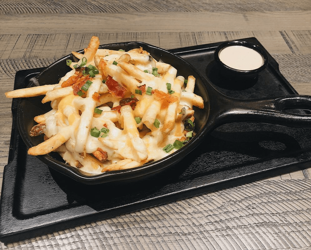 A total classic: bacon cheese fries. Three of my favorite things: fries, bacon, and cheese. I have recreated a healthy version of these many times at home, but nothing can beat the og. And would you look at this presentation?! So sleek and minimalist, so you can focus on the main attraction, the food, duh! Truly amazing, but I know you already know that.