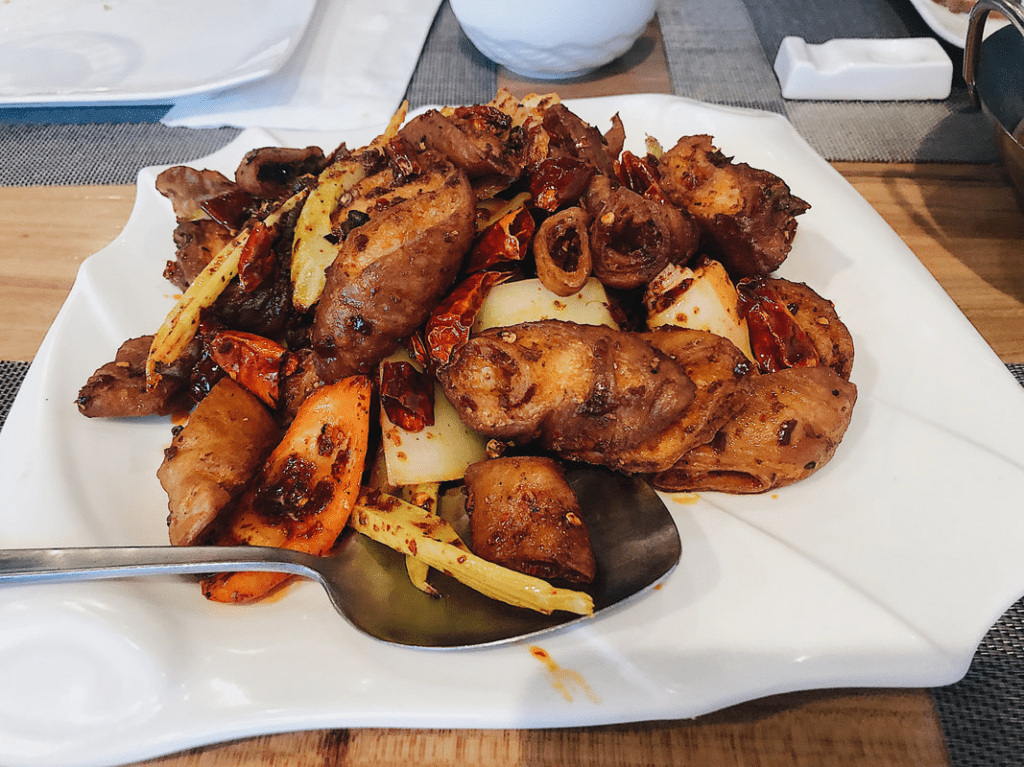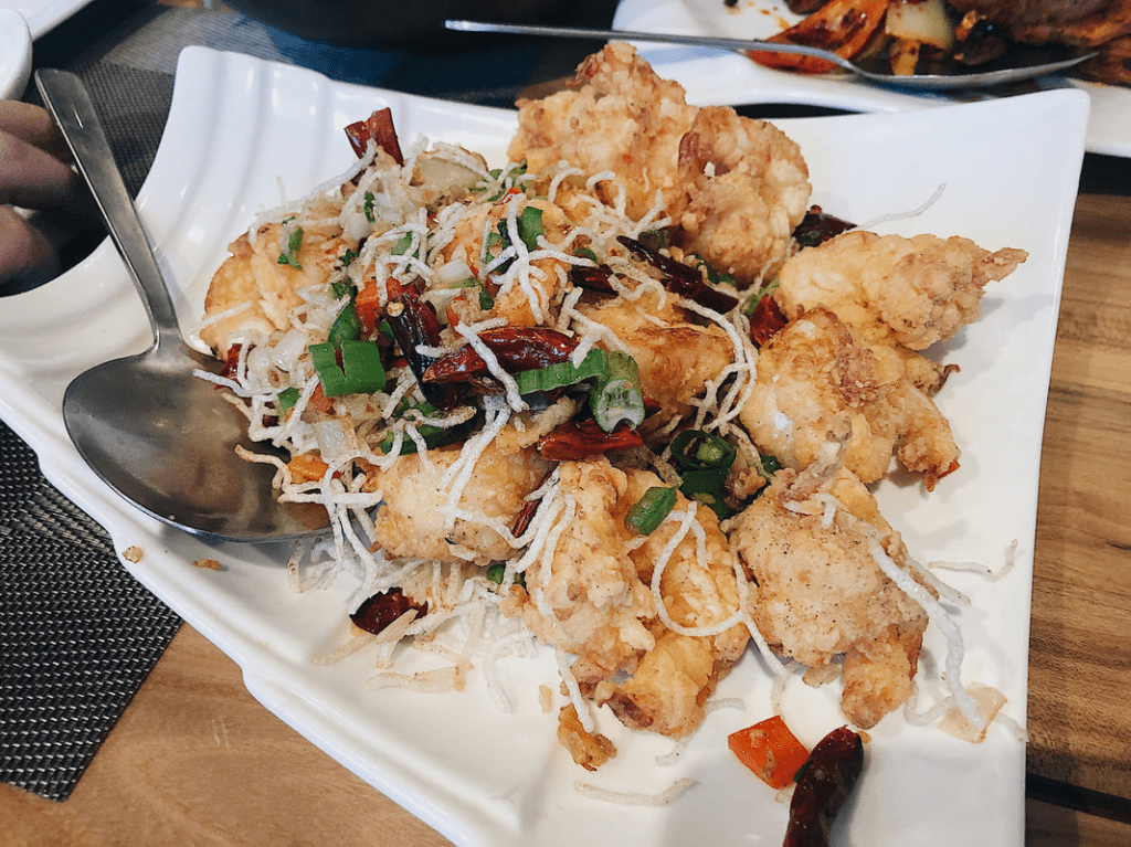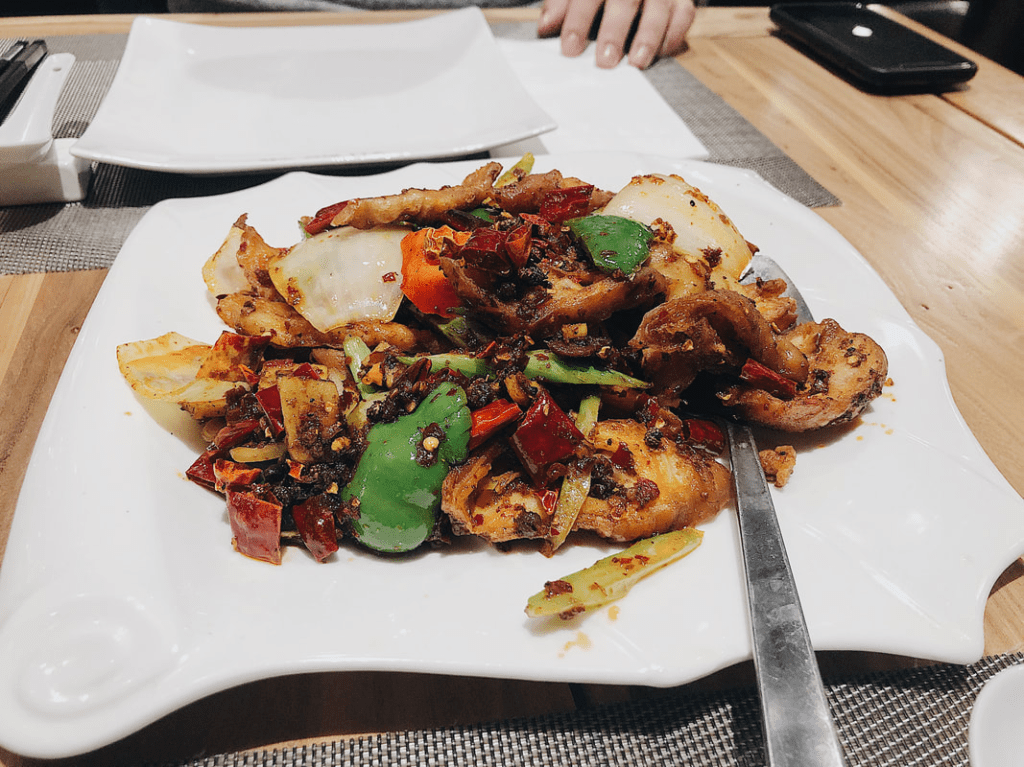 The first three dishes are what we ordered during our Valentine’s dinner. First starting off, this is the “fried pork intestine with chili sauce”. I’ve definitely said it before that this dish can be intimidating, but it’s truly so flavorful and one of my favorites. This was the dish that sold it for my boyfriend and I, the intestine was cooked so perfectly and it was incredibly crispy. But not only that, the flavor was intense and flavorful. I also really loved the peppers in the dish because they added a really nice crisp to the dish.