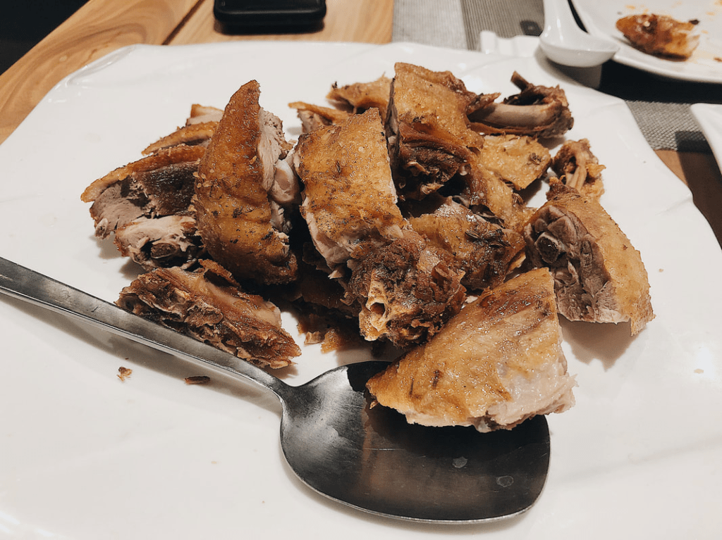 Finally, for our Valentine’s dinner, we ordered the crispy duck. We both agreed that this isn’t what we expected. We thought we were getting the traditional roasted duck and I think if that is what you’re looking for then you definitely should order the “smoked tea duck”, but we order the “crispy duck”. It was definitely an interesting take as I have never eaten fried duck before. It was okay, but I think it definitely needed a sauce to pair with. It was a bit dry.