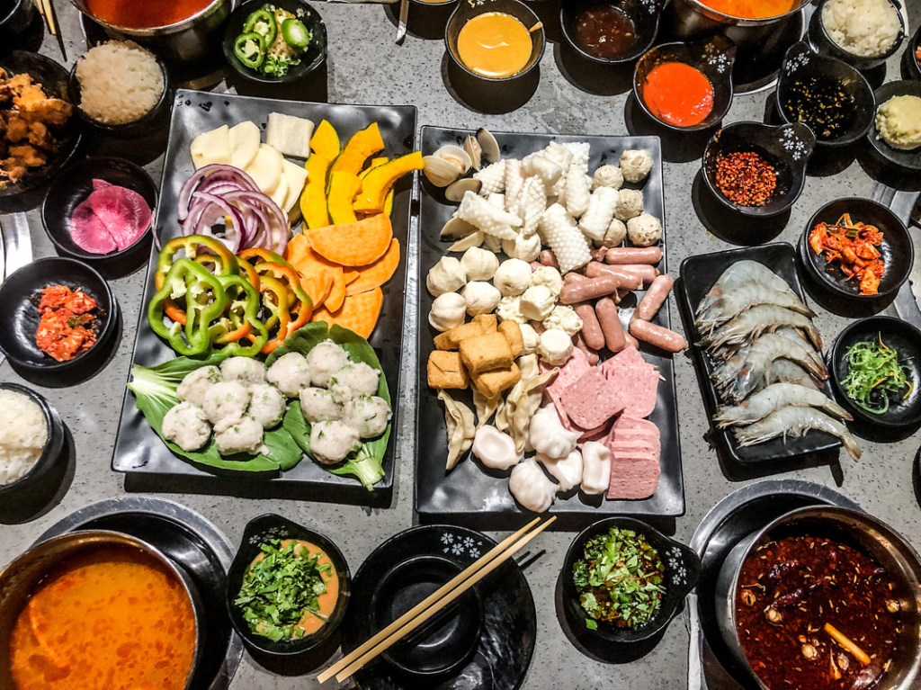 We opted to do hot pot and kbbq. The ultimate cheat meal. First off, my go to sauce is always peanut sauce, with a lil chili oil, and scallions/cilantro. For hot pot, I ordered tom yum broth, which is usually my go to if they have this option, but this place is the most flavorful that I’ve ever had. My faves are: k pot steak for the grill, har gao, shumai, shrimp, and various meatballs for hot pot, they also have popcorn chicken appetizer which is delicious!