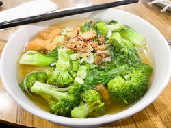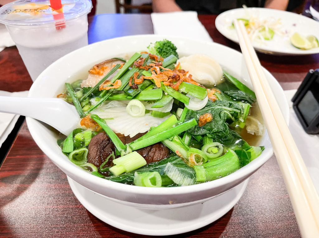 For dinner, we went to Com Ga Ninh Kieu which was a new place to me! I had originally ordered mi xao gion chay, which was crispy pan fried noodles with tofu, however, they were out that night. So, instead I had hu tieu nam dong co, which was egg noodles with shiitake mushrooms in a veggie broth.
