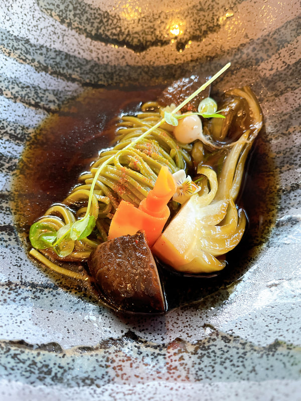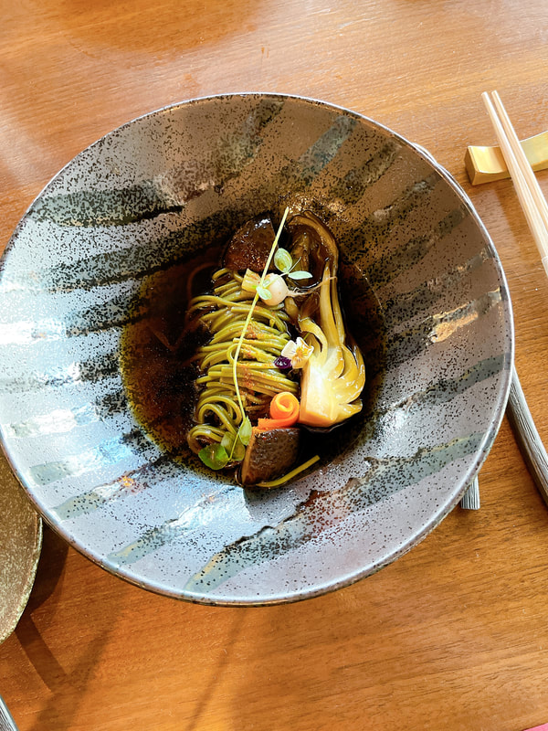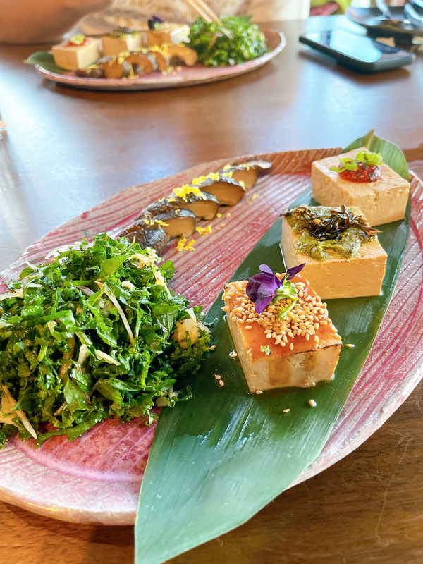 Wow. I am still amazed at how beautiful this tofu platter is. It’s plated so beautifully and it tasted even better. For someone like my boyfriend who is not a mushroom lover, you may not like this course. I, on the other hand, really love mushrooms and ended up eating his portion as well. The tofu is cold, although I think one of them was warm, but overall cold paired with wasabi green salad. I found the tofu to be alright, but my favorite was the closest piece with the purple flower (lemongrass miso glazed) because it was slightly sweet and had the best flavor.
