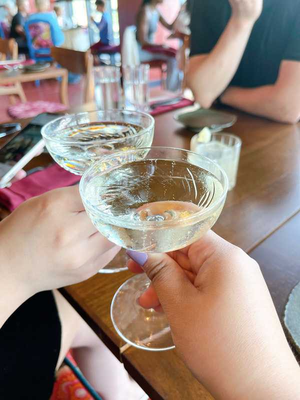First off, they give you complimentary champagne for your birthday! I personally don’t think I’m a champagne gal, but I really did enjoy the beautiful drink I ordered! I asked for something sweet and our waitress suggested the Rhythm of the River which came out looking like a dream. I mean those colors are 100% my aesthetic and I may or may not have gotten it because it’s pink…